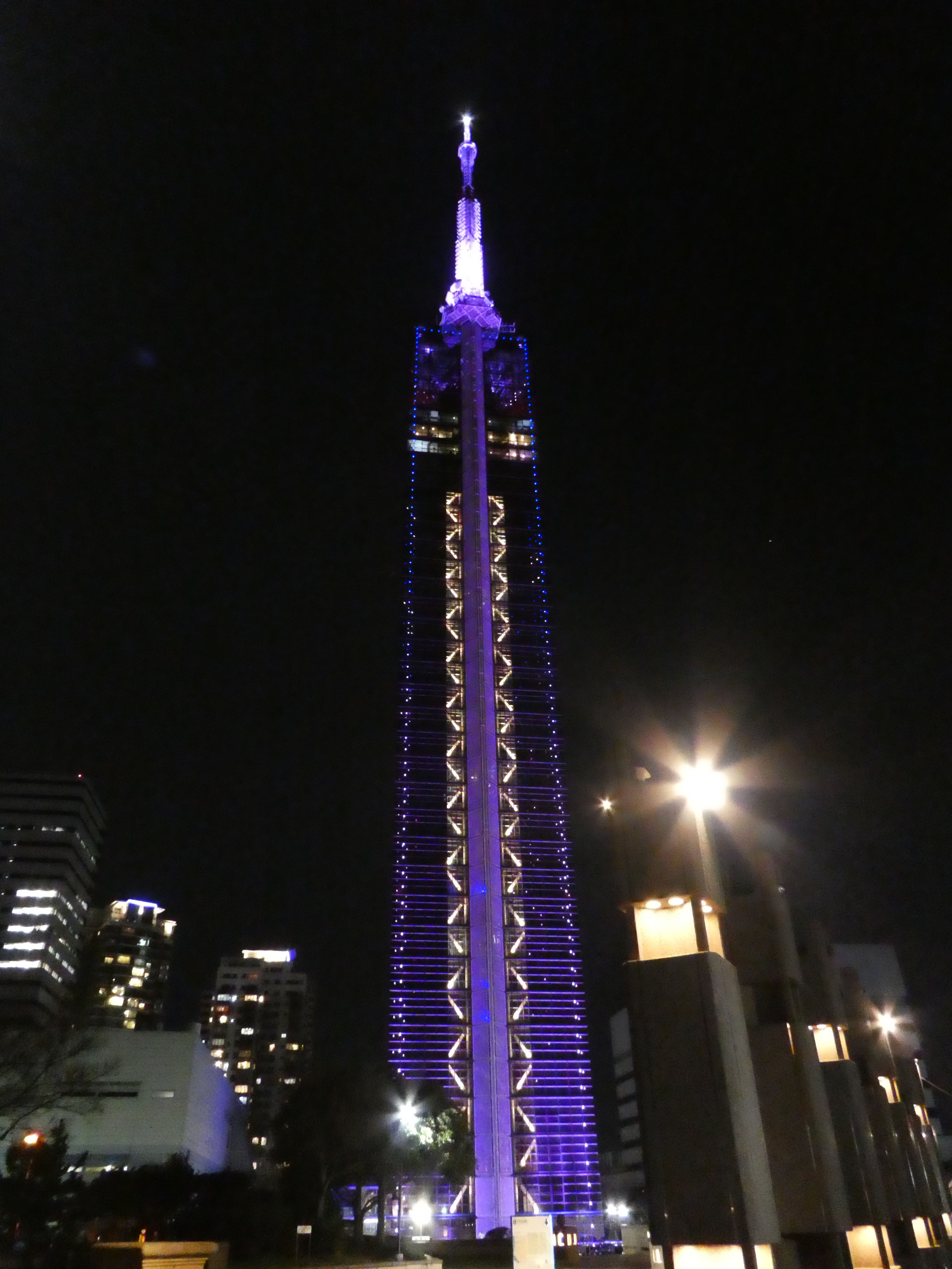 Kirschblüten gibt es noch keine, aber vor lauter Vorfreude hat man den Fernsehturm entsprechend beleuchtet.Die Rückseite übrigens auch.