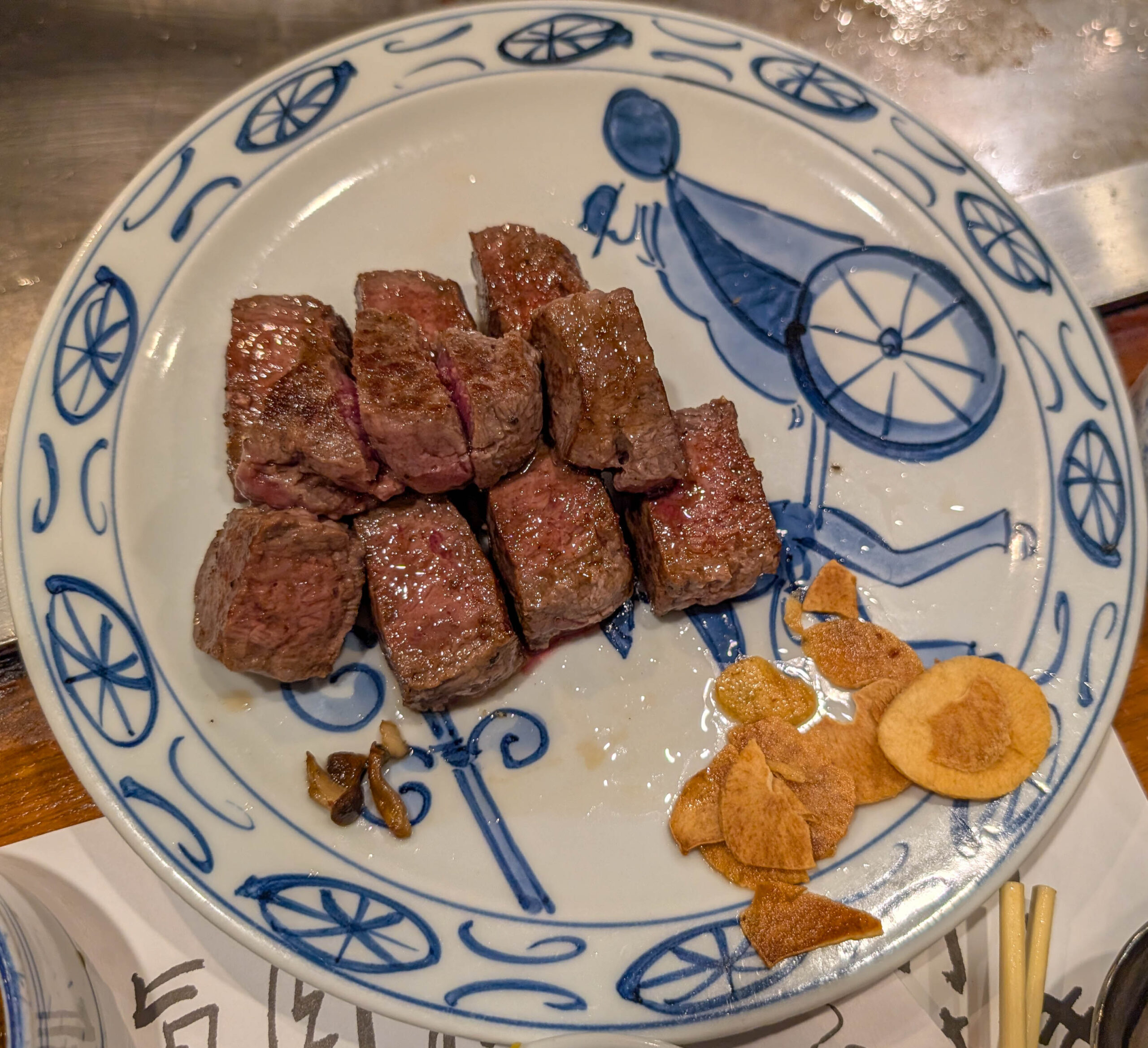 Schmeckt tatsächlich so wie erwartet: zergeht auf der Zunge und hat einen intensiven, aber feinen Rindfleischgeschmack. Wenn das Anstehen nicht wäre, würde ich nochmal hinfahren. Denn der Preis von €46,- inkl. Beilagen ist jetzt nicht abschreckend, dafür kriege ich in Deutschland im Steakhaus nicht annähernd diese Qualität.