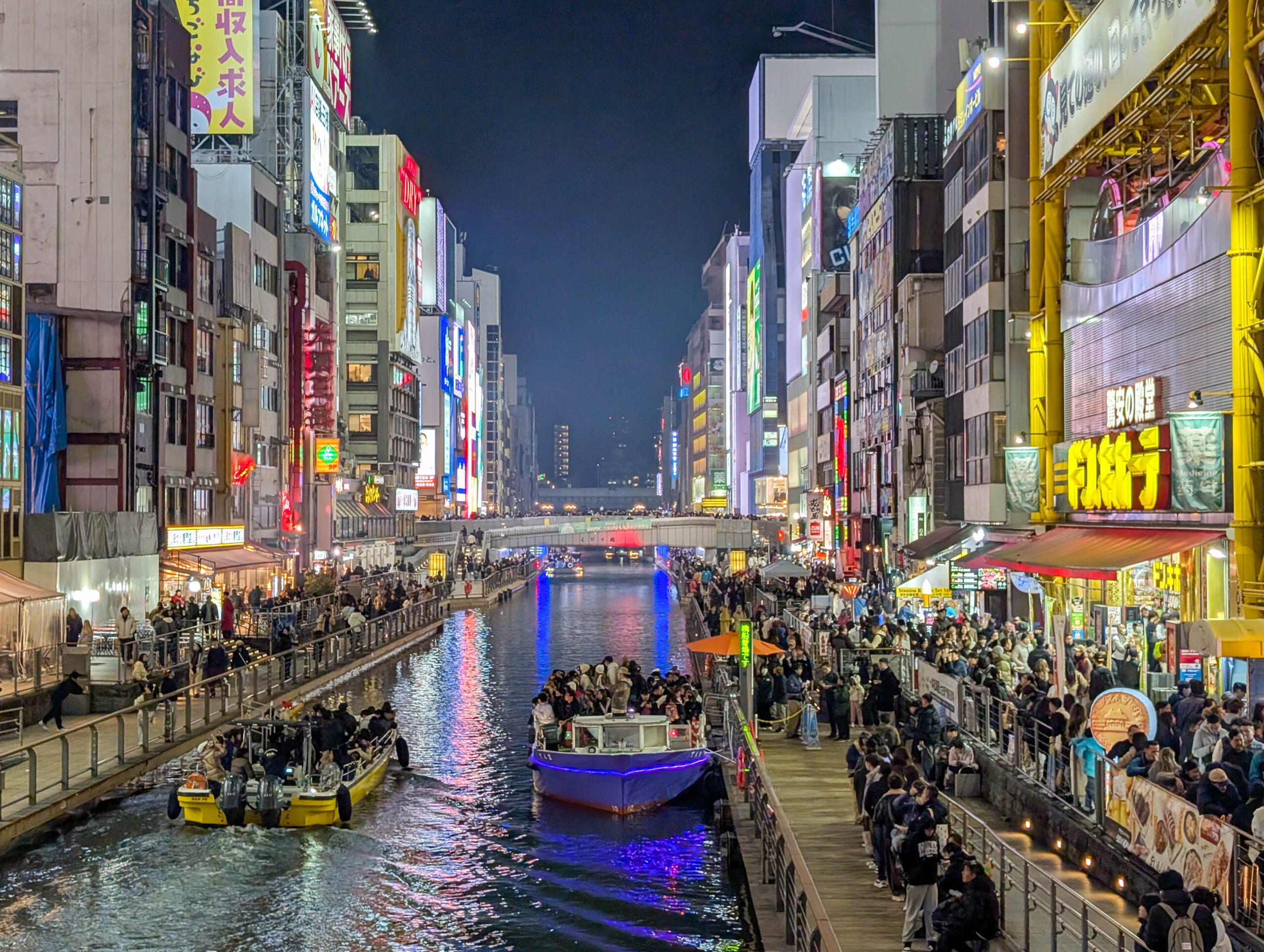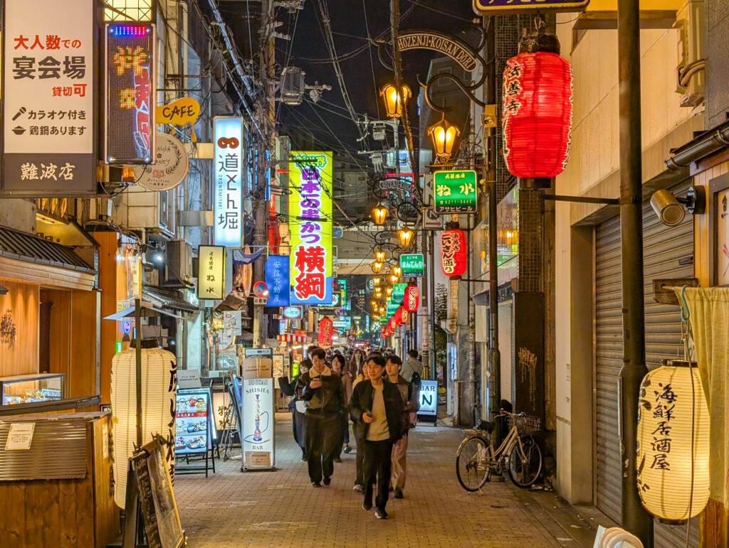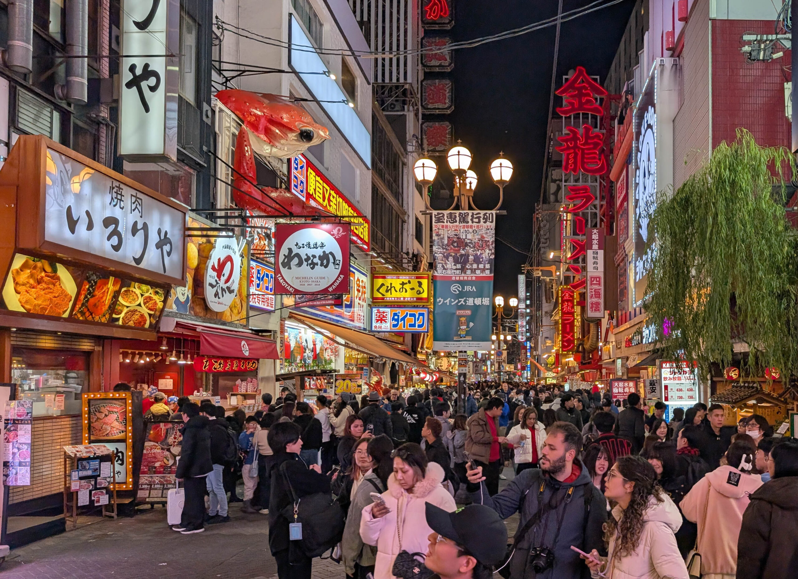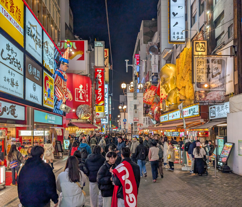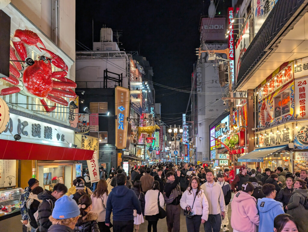 Am relativ frühen Nachmittag war ich zurück in Osaka und konnte eine Pause einlegen, bloggen und Bilder entwickeln. Abends zog es mich dann aber wieder raus, diesmal in die Ess- und Ausgehmeile Dotonburi, die in der bei Nacht wesentlich schicker ist als bei Tag. Aber auch deutlich voller, wobei es erträglich war. Einer der Gründe, warum ich das heute gemacht habe ist, dass es zu Silvester wahrscheinlich echt extrem wird.