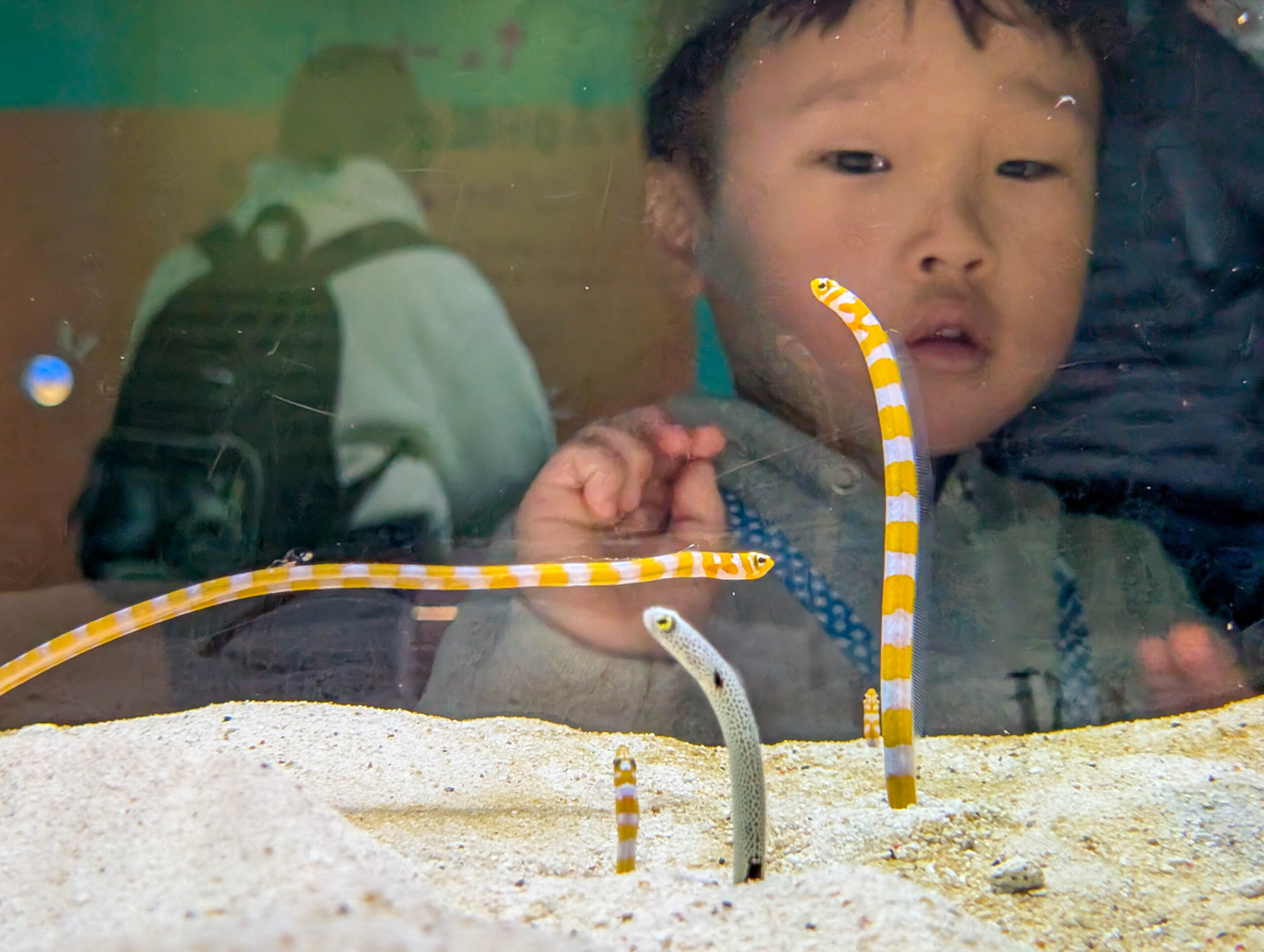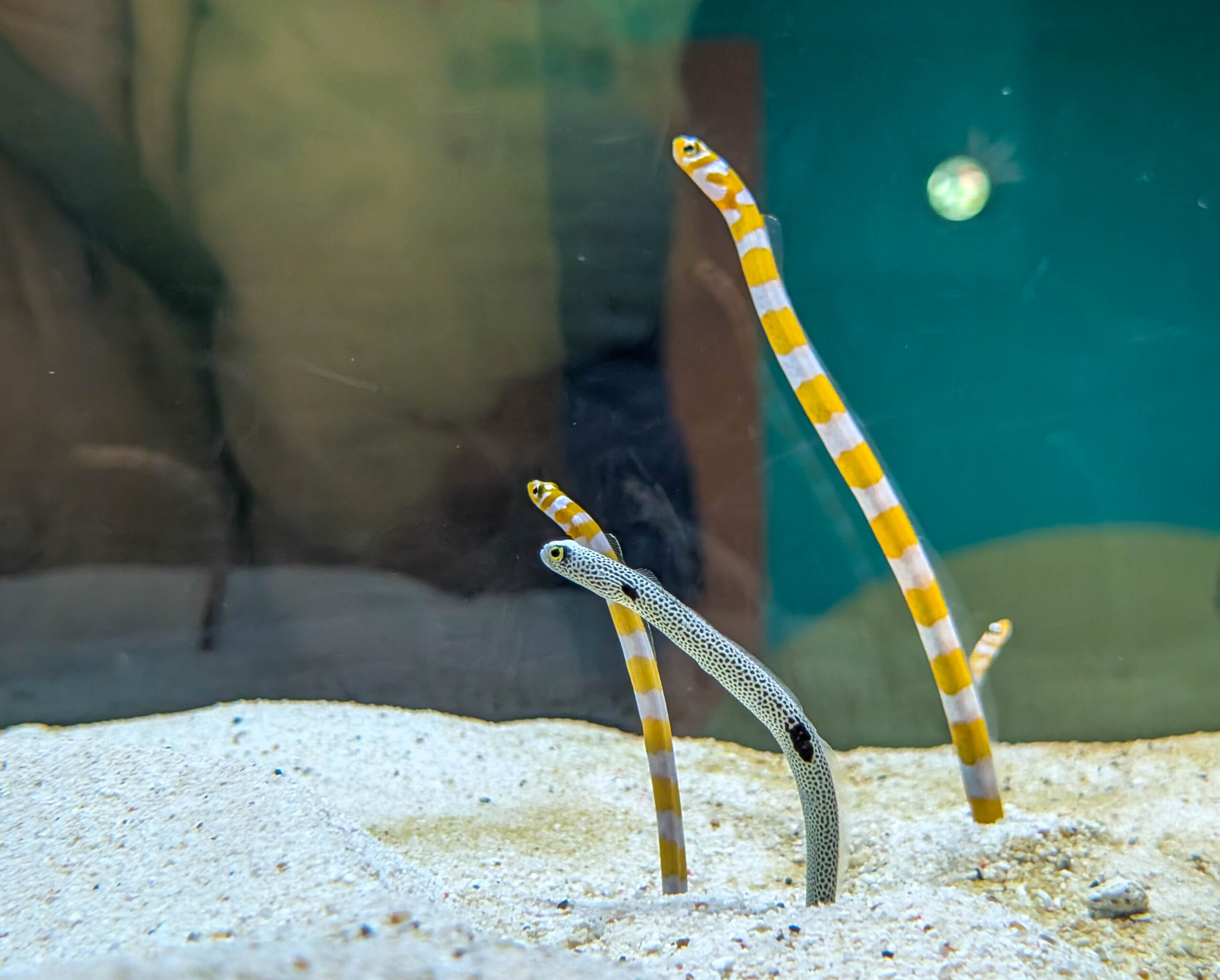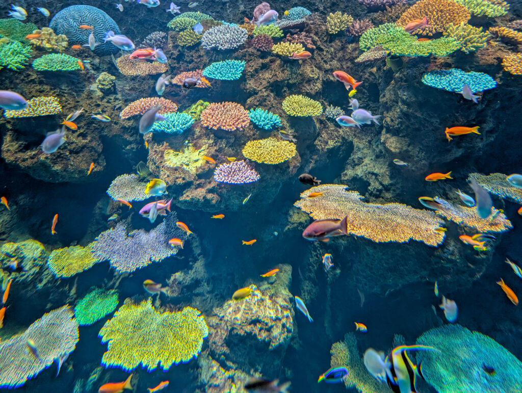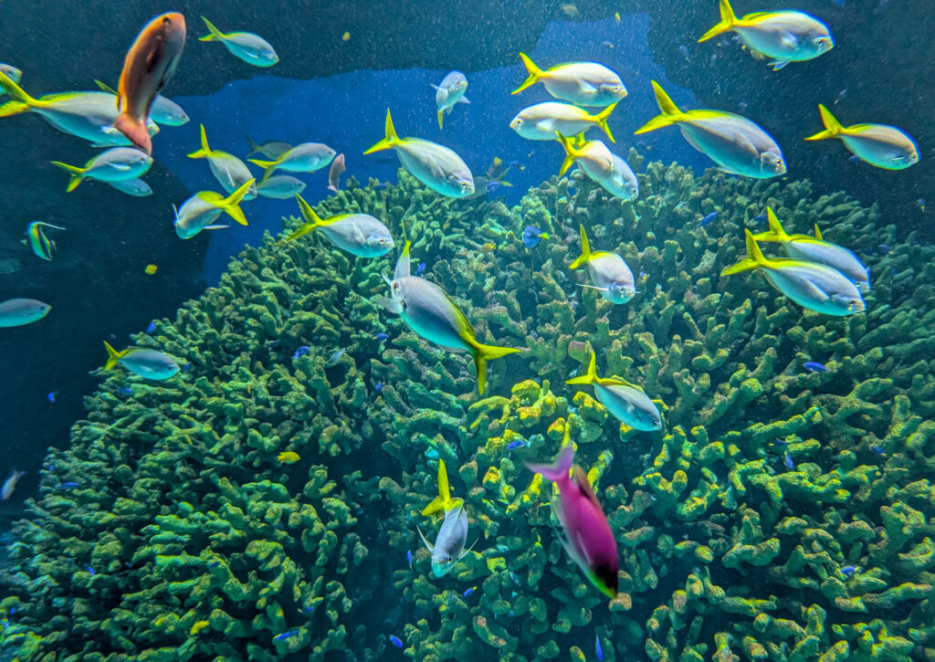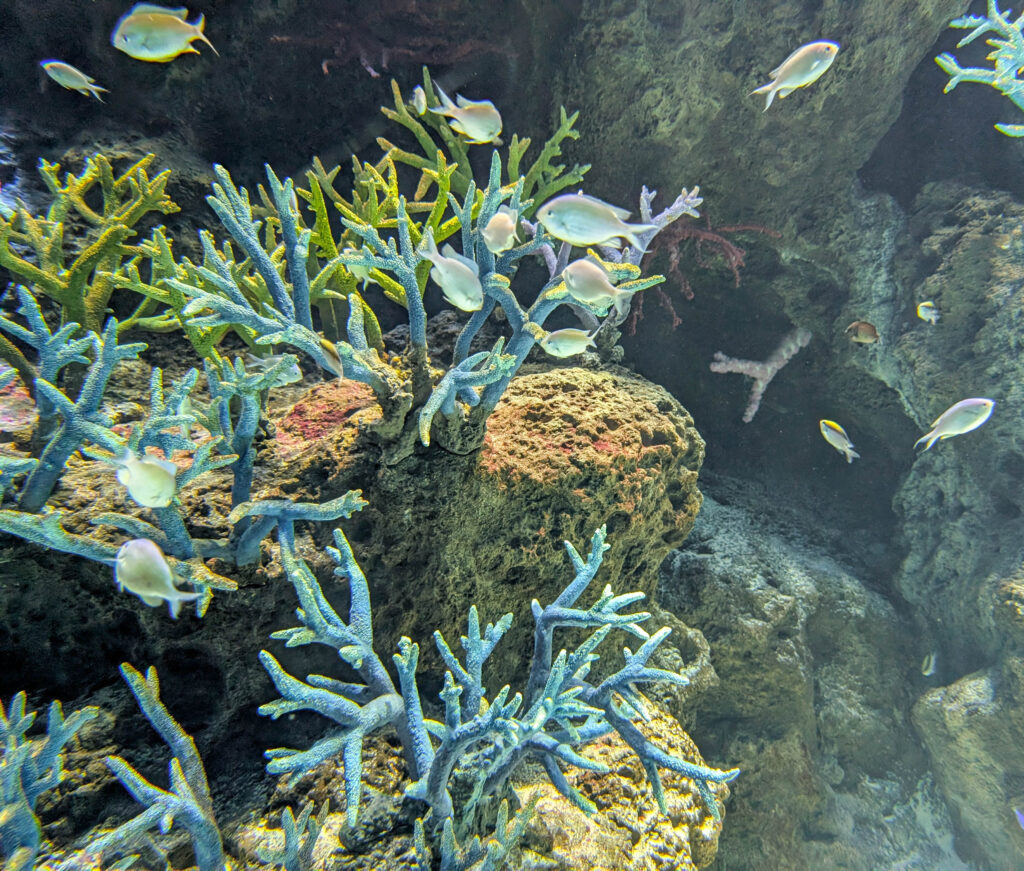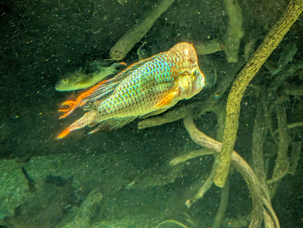 Aquarienfotografie ist eine eigene Disziplin und keine, die ich beherrsche. Ich war ohnehin nur mit dem Handy unterwegs, schwere Ausrüstung wäre schwierig zu manövrieren und hier auch eher nutzlos gewesen.