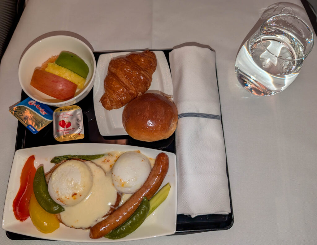 Der entscheidende Vorteil war aber der Nachtflug. Um 23.30 ging es los – bis wir dann in der Luft waren, das Abendessen abgeräumt und der Digestif getrunken war, war es ca. 2.00 Uhr morgens japanischer Zeit. Und da war ich dann so rechtschaffen müde, dass ich 9 Stunden (!!!) des 15-stündigen Flugs verschlafen habe. Der Schlaf war nicht besonders gut oder tief, aber er war wirklich lang. Als ich aufwachte, waren es nur noch 3 Stunden bis nach München.