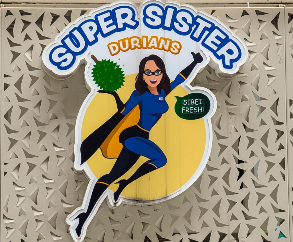 Nein, das ist keine Riesen-Durian, es ist die Esplanade Theatre und Concert Hall.Hier sorgt die Super Sister Durian für Ordnung. Ihre Superkraft: sie stinkt so entsetzlich, dass alle Bösewichter Reißaus nehmen.