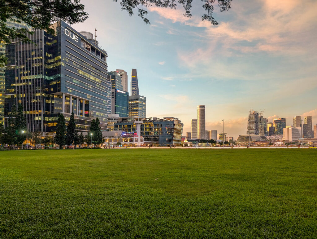 Danach sind wir erstmal zur Siesta zurück ins Hotel. Abends sind wir dann aber nochmal aufgebrochen zur Marina Bay an der Mündung des Singapur-Flusses. Das erwies sich als Glücksfall, denn Wetter und Licht waren optimal.