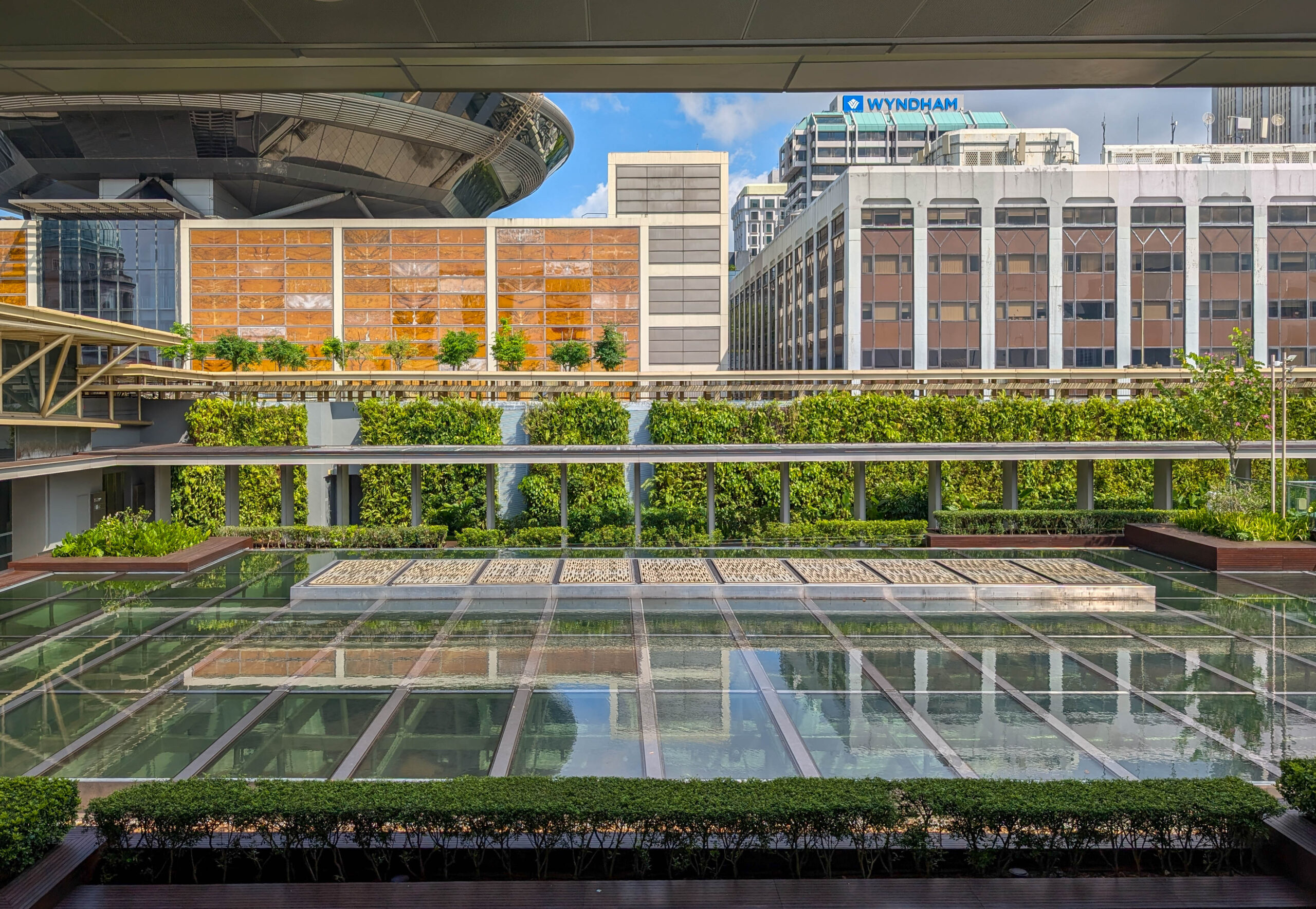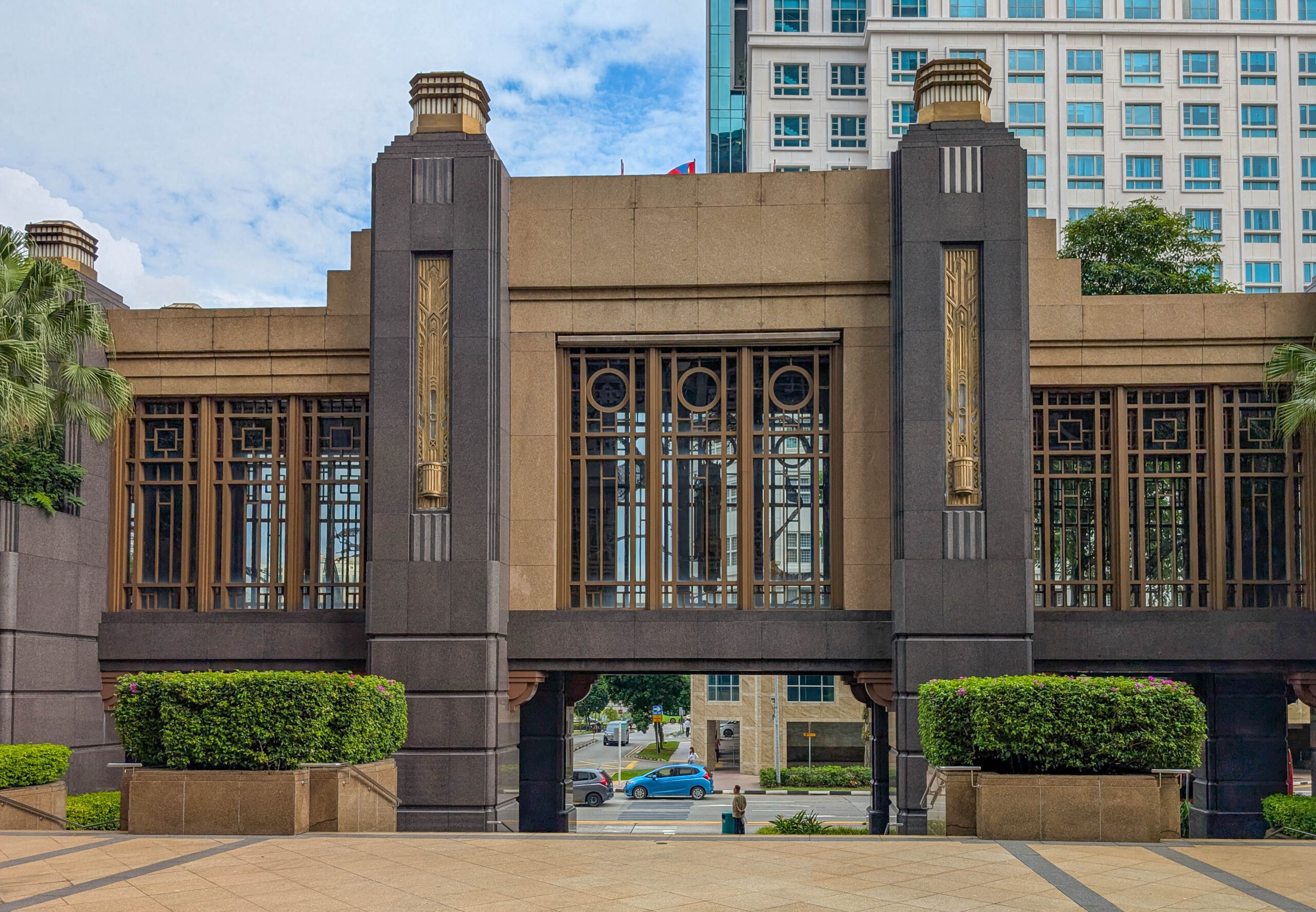 Rund um das Gebäude sind mehrere Kunstwerke, einige von Dali, die alle der Öffentlichkeit zugänglich sind. Warum? So spart man Unternehmenssteuern, Singapur fördert Kunst im öffentlichen Raum.