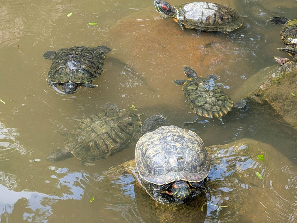 Extrablatt! Otter gesichtet! Seit der Pandemie treiben sich die Otter deutlich offener in Singapur rum, es stehen überall Warnschilder, dass man sie nicht anfassen oder in die Enge treiben soll. Aber tatsächlich welche zu sehen ist dann doch ein besonderes Erlebnis, und genau das ist uns in den botanischen Gärten von Singapur heute gelungen. Hier die Beweise, so gut die Handykamera das eben hergibt: