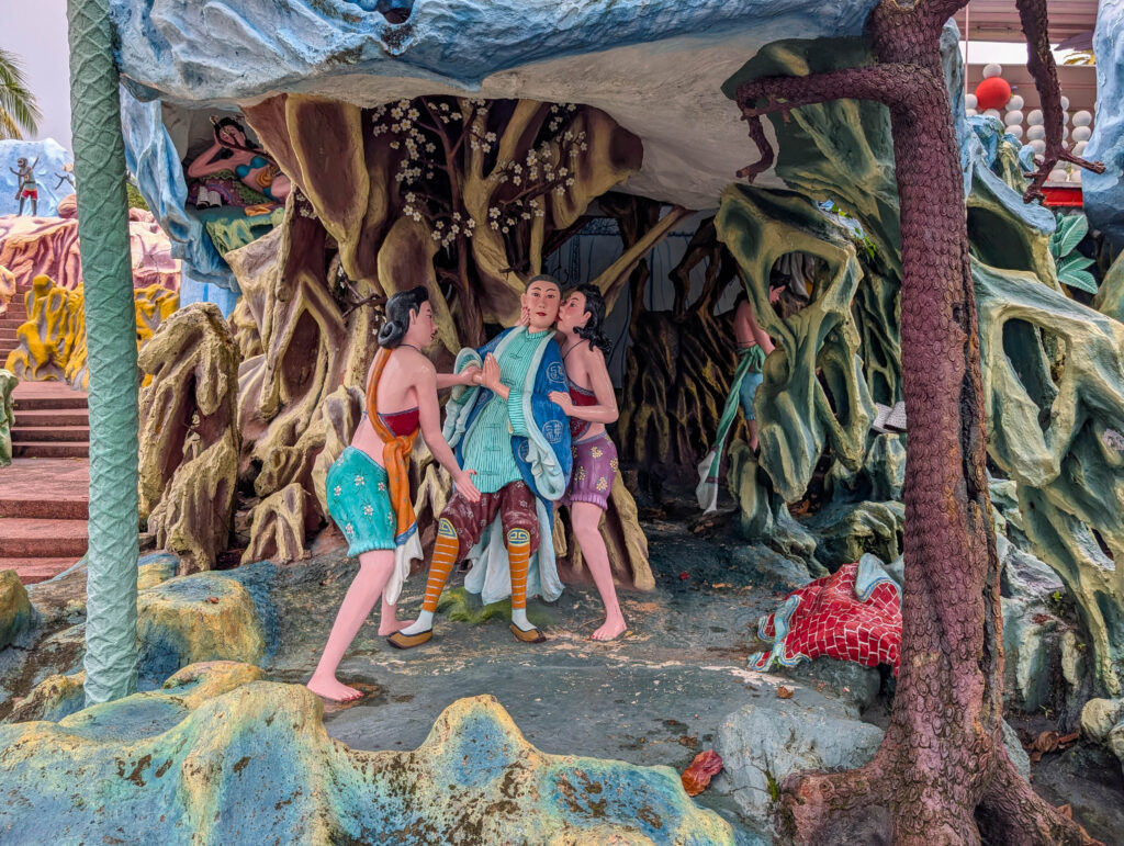 Nun aber zur Haw Par Villa. Das war das Anwesen der Brüder Aw Boon Haw und Aw Boon Par, den Produzenten von Tiger Balm, die mit dieser Salbe zu großem Reichtum gekommen waren. Sie sind 1926 von Burma nach Singapur übergesiedelt und bauten dort eben jene Villa, die aber im zweiten Weltkrieg erst bombadiert und dann von den Japanern besetzt, und nach dem Krieg abgerissen wurde.