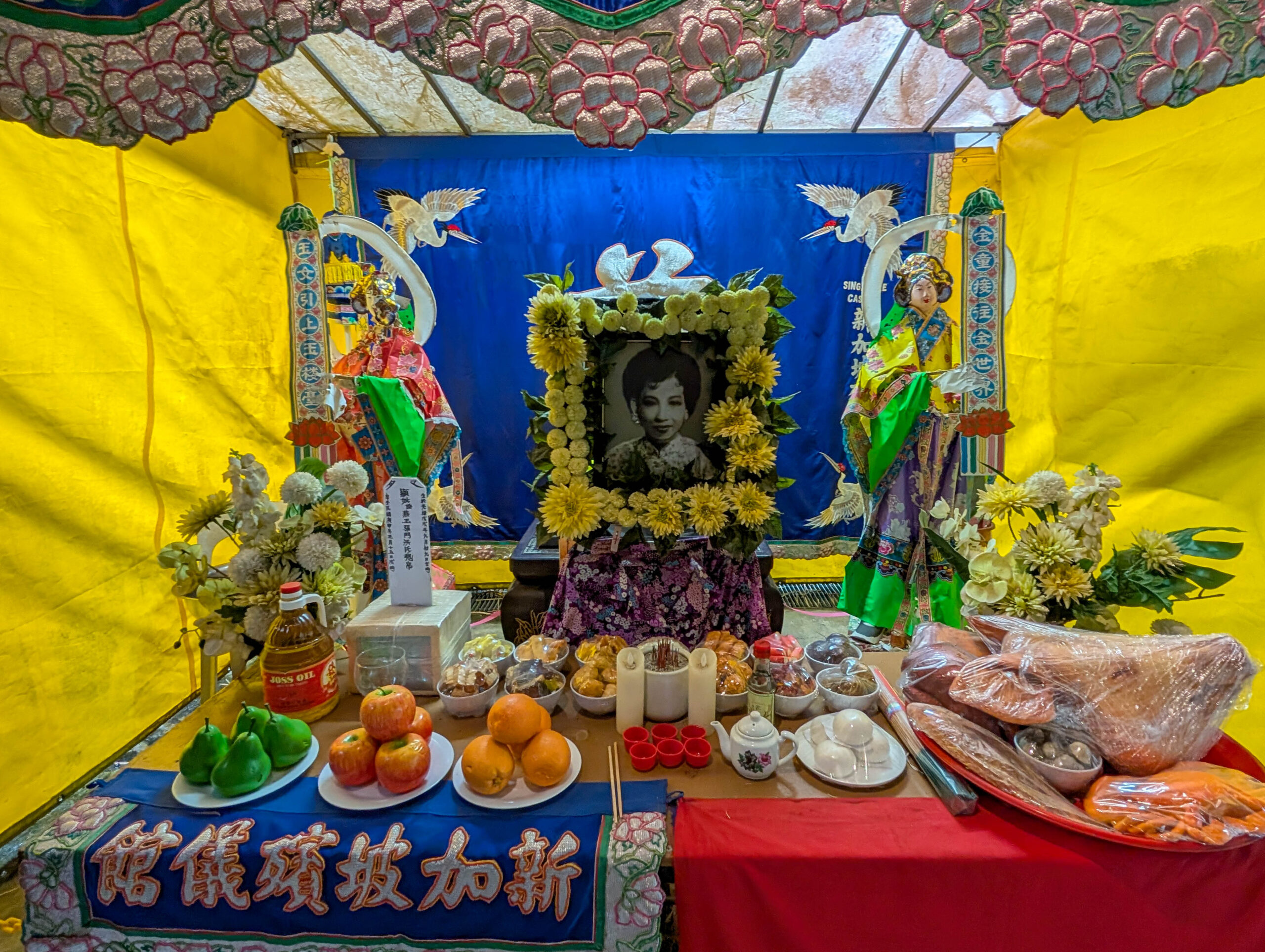 mexikanischer Totenalter von Dia de Los MuertosChinesischer Totenalter vom Qingming-FestTraditionelles chinesisches GrabGedenkaltar von einem Begräbnis in Singapur