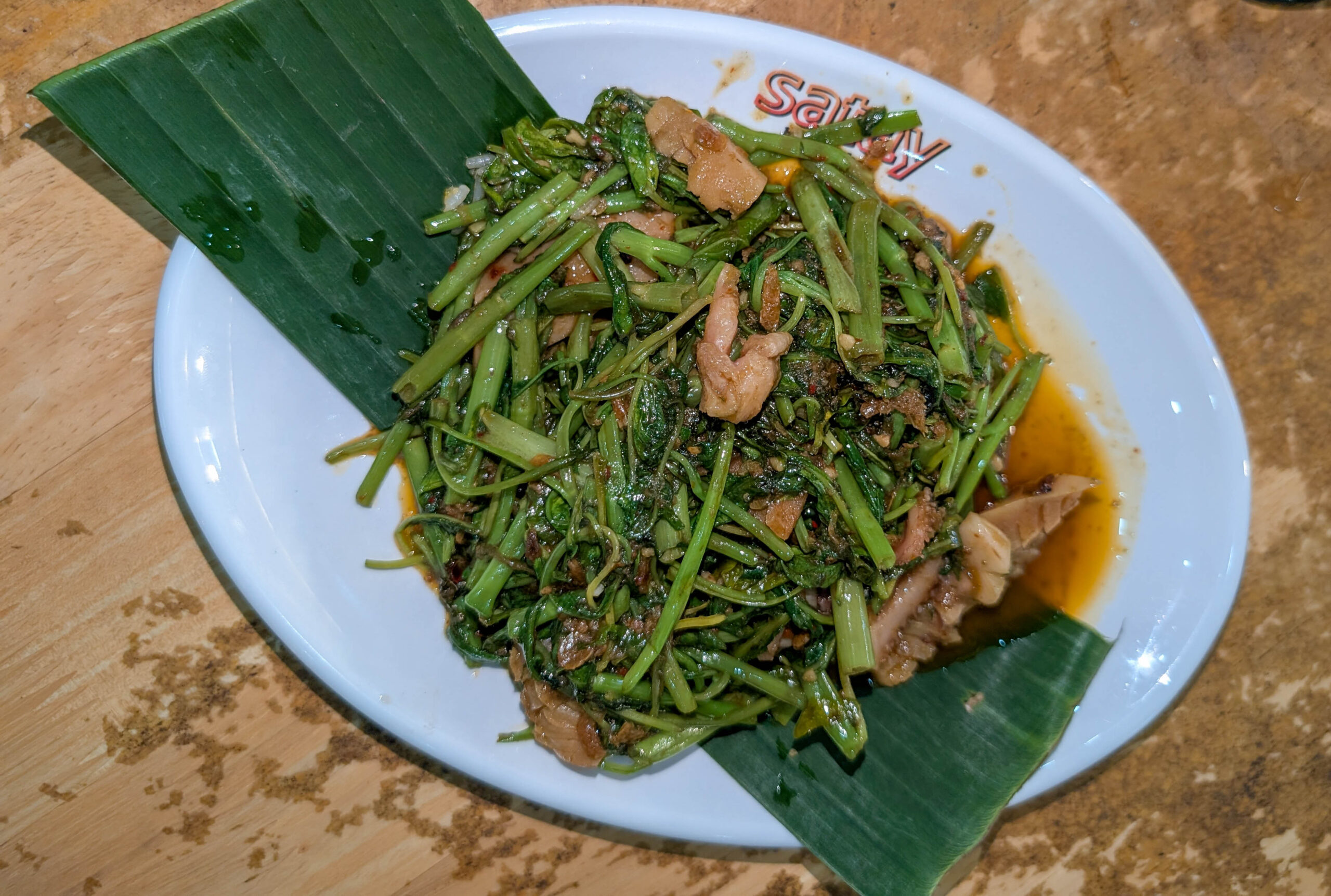 SpinatGegrillter KalmarSchmackhaftes Gemüse mit Sambal OlekGebratene NudelnPapaya-SalatTofu mit PilzenIn gesalzenem Eigelb frittierte Calamari