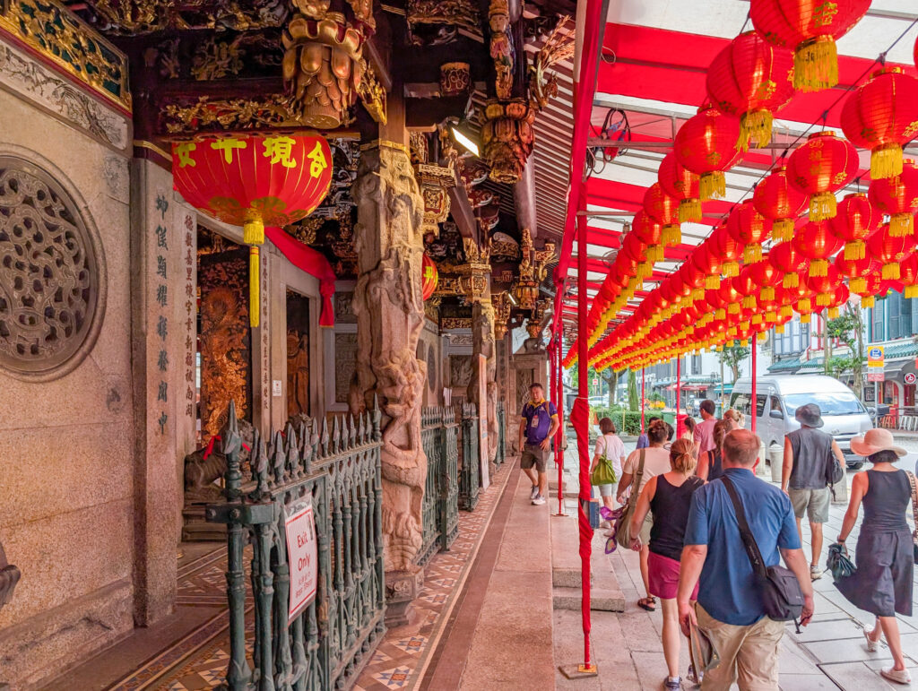 Dann ging es los mit der Walking Tour. Wir fingen in dem Teil von Chinatown an, der nicht touristisch ist, aber auch geschichtsträchtig. Dieser ehemalige Tempel zum Beispiel ist heute eine Hotellobby.