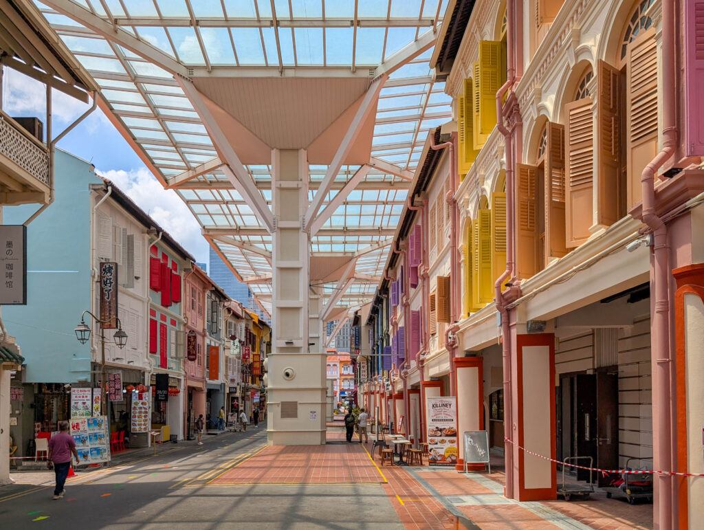 Mehrere ehemalige Shophouses, die im 20. Jahrhundert teils noch gnadenlos überfüllt waren, sind heute überdacht und dienen hauptsächlich für die Gastronomie.