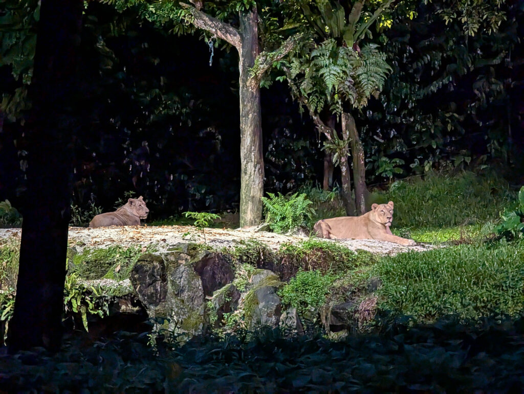 Die Night Safari beginnt mit einer „Bahnfahrt“ durch den Park. Das Anstehen war dabei so hervorragend organisiert, dass es überhaupt nicht nervte. Die Bahnfahrt selber bringt einen an einigen der Highlights des Zoos vorbei; man sieht auch einige Tiere recht gut, aber zum Fotografieren muss man danach schon nochmal zu Fuß durch den Zoo, was gute zwei Stunden in Anspruch nimmt, wenn man alles sehen will.