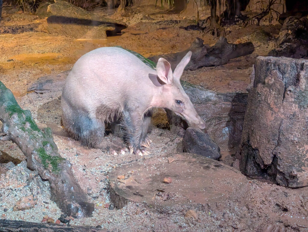 Die Tiere sind alle nachtaktiv, das ist Sinn und Zweck dieses Zoos. Ein bisschen Beleuchtung gibt es schon, aber mehr auf Mondlicht-Niveau. Das führt natürlich zu fotografischen Herausforderungen. Mit dem Nachtsicht-Modus meines Pixel-Smartphones sind mir schon einige brauchbare Aufnahmen gelungen, aber auch nur bei den Tieren, die mal für 3-6 Sekunden stillgehalten haben.