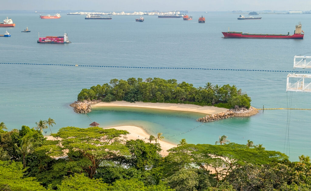 Aber natürlich gibt es in Siloso (der westliche Teil von Sentosa) nicht nur grimmige Weltkriegsgeschichte, sondern auch schöne, wenngleich künstliche, Strände sowie den Ausblick auf eine der geschäftigsten Wasserstraßen der Welt.
