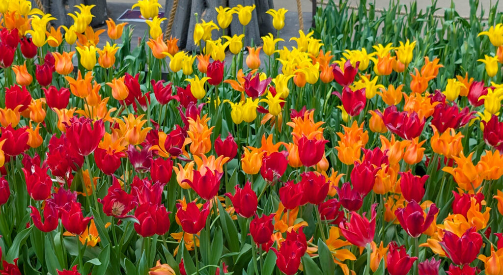 Das Flower Dome hingegen ist mehr eine Blumenshow mit Blumen aus aller Welt. Diesmal stand im Zentrum die „Tülipmania“ (sic), also die große Tulpenausstellung. Hier war es ihnen wichtig zu erklären, dass die Tulpen aus Anatolien kommen und von den osmanischen Sultanen zu Zierpflanzen gezüchtet wurden. Darum auch die Deko mit trojanischem Pferd, phönizischem Schiff und allerlei Teppichen und Diwanen. Ist aber schon hübsch alles.
